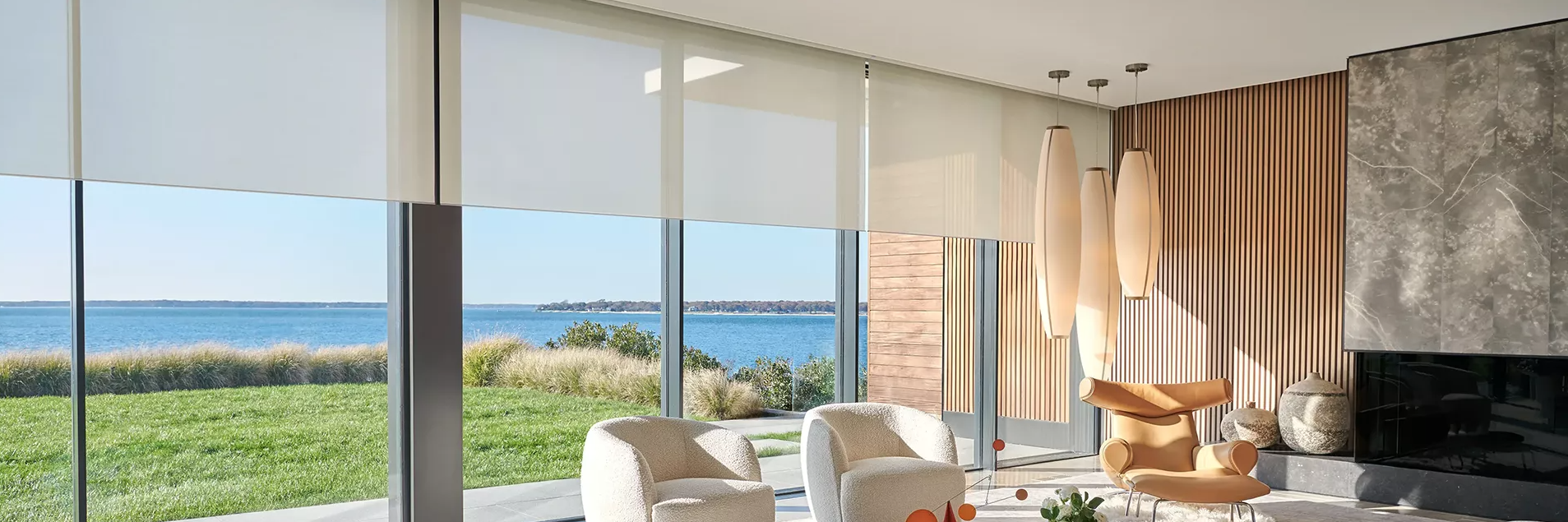 Automated Lutron shades for privacy, glare reduction, and temperature control